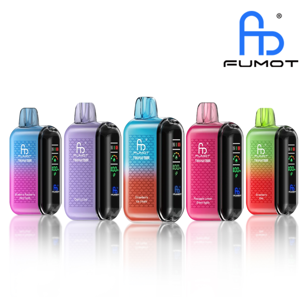| Fumot Tornado 20k | Banana Cake, Blackcurrant Apple, Blue Razz, Blue Razz Gummy Bear, Blueberry Baspberry Hard Candy, Blueberry On Ice, Blueberry Raspberry, Cactus Ice, Cactus Kiwi, Cherry, Cherry Berry, Cherry Cola, Cherry Lime, Cool Mint, Cucumber Lemonade, Huckleberry, Jelly Beans, Kiwi Passion Fruit Guava, Lychee Hami Melon, Mixed Berry, Mr Blue, Peach Berry, Peach Mango Watermelon, Peach Pineapple Orange, Pear Ice, Pina Colada, Pineapple Lemon Green Apple, Red Grape Lime, Skittles, Strawberry Ice, Strawberry Ice Cream, Strawberry Kiwi, Strawberry Raspberry Cherry Ice, Strawberry Waterme on, Watermelon Ice |